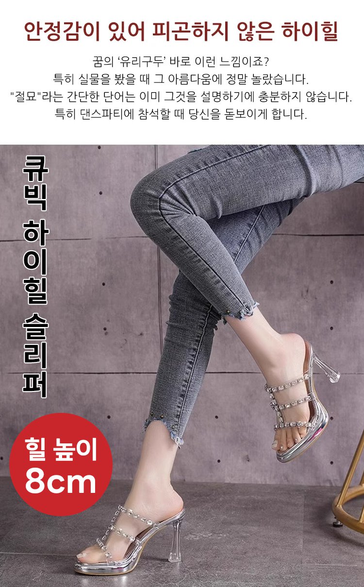큐빅 하이힐 슬리퍼